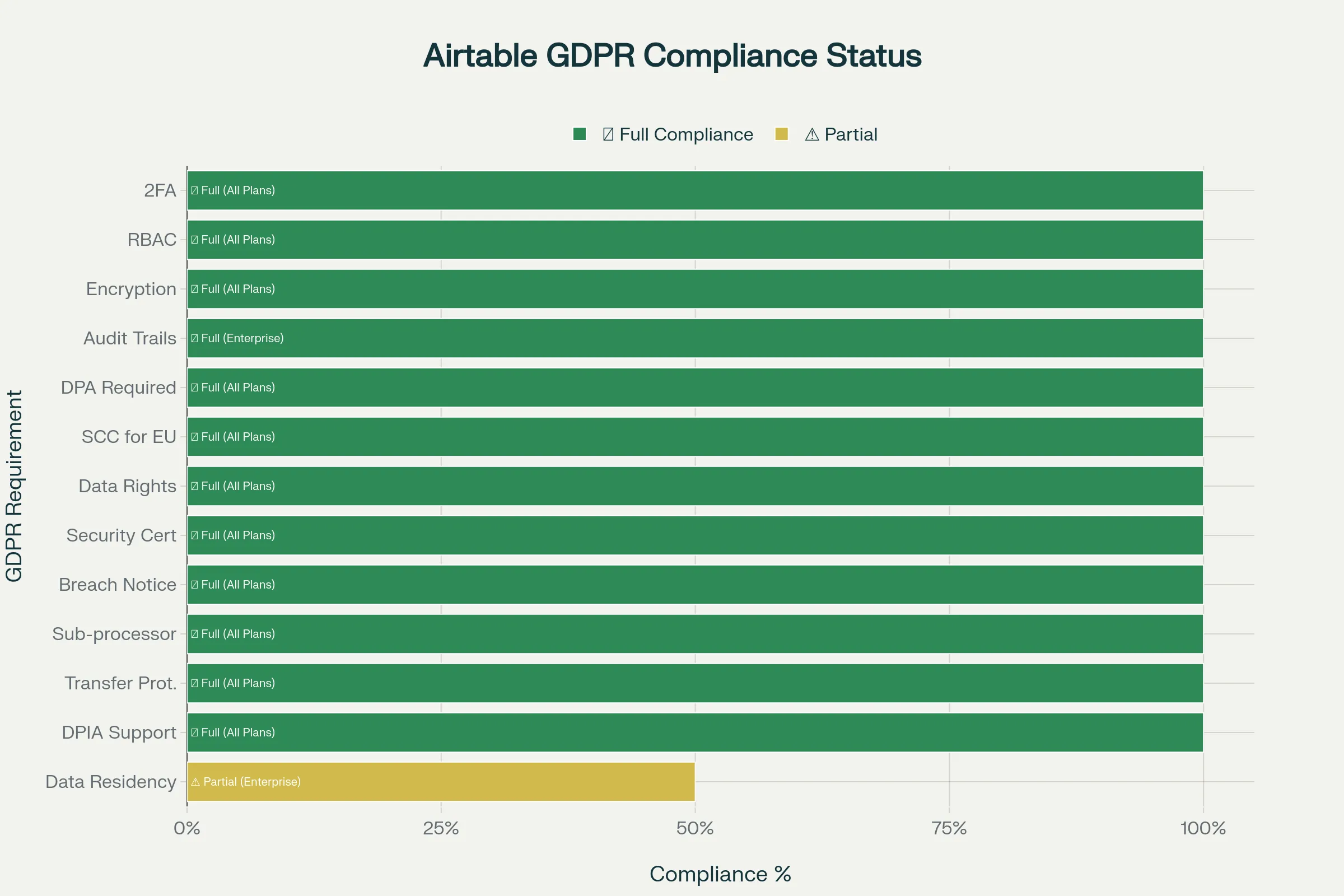 La seule zone de conformité partielle reste l’hébergement des données. Tant que la résidence des données en Europe n’est pas activée, Airtable doit s’appuyer sur des mécanismes juridiques supplémentaires (SCC + mesures techniques renforcées) pour rester utilisable en Europe.