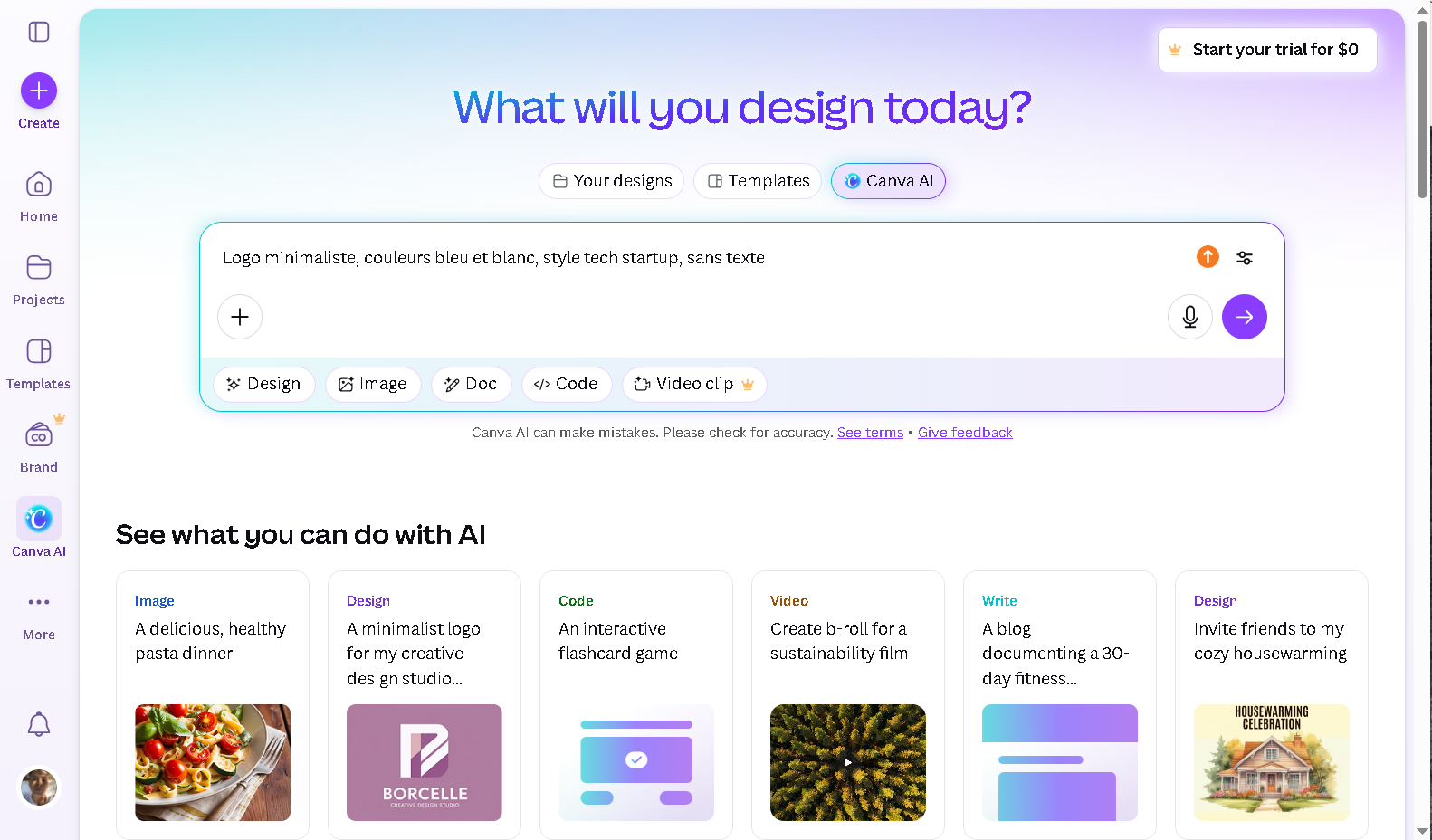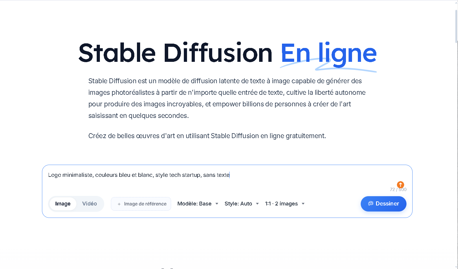 - Écrivez un prompt détaillé (ex : "Logo minimaliste, couleurs bleu et blanc, style tech startup, sans texte")