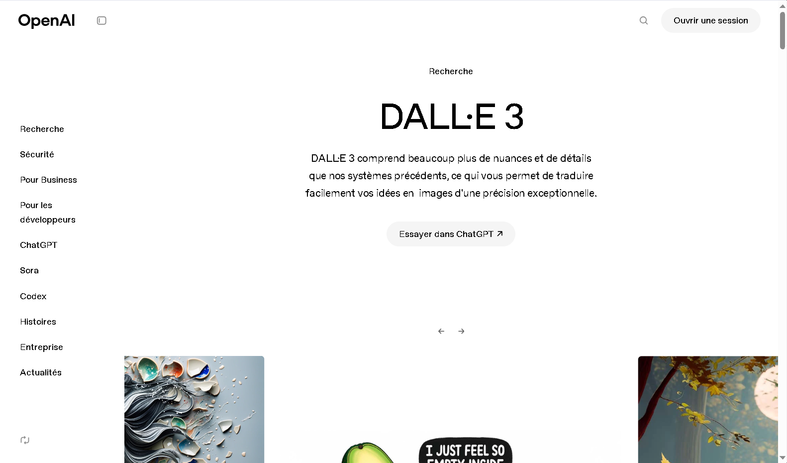 DALL-E 3 est l'IA générative d'OpenAI, accessible via ChatGPT Plus ou l'API. Excellente compréhension du langage naturel, génération précise et rapide.