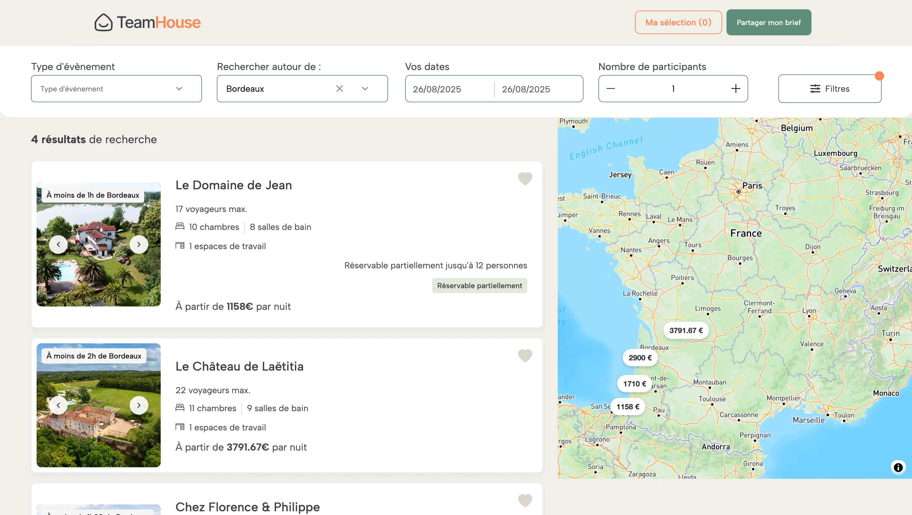 TeamHouse est une plateforme spécialisée dans la location de lieux de caractère pour des événements d’entreprise. En combinant hébergement, restauration et prestations sur-mesure, ils transforment chaque séminaire en expérience. Leur enjeu : digitaliser un parcours encore trop artisanal, sans perdre en qualité d’accompagnement.