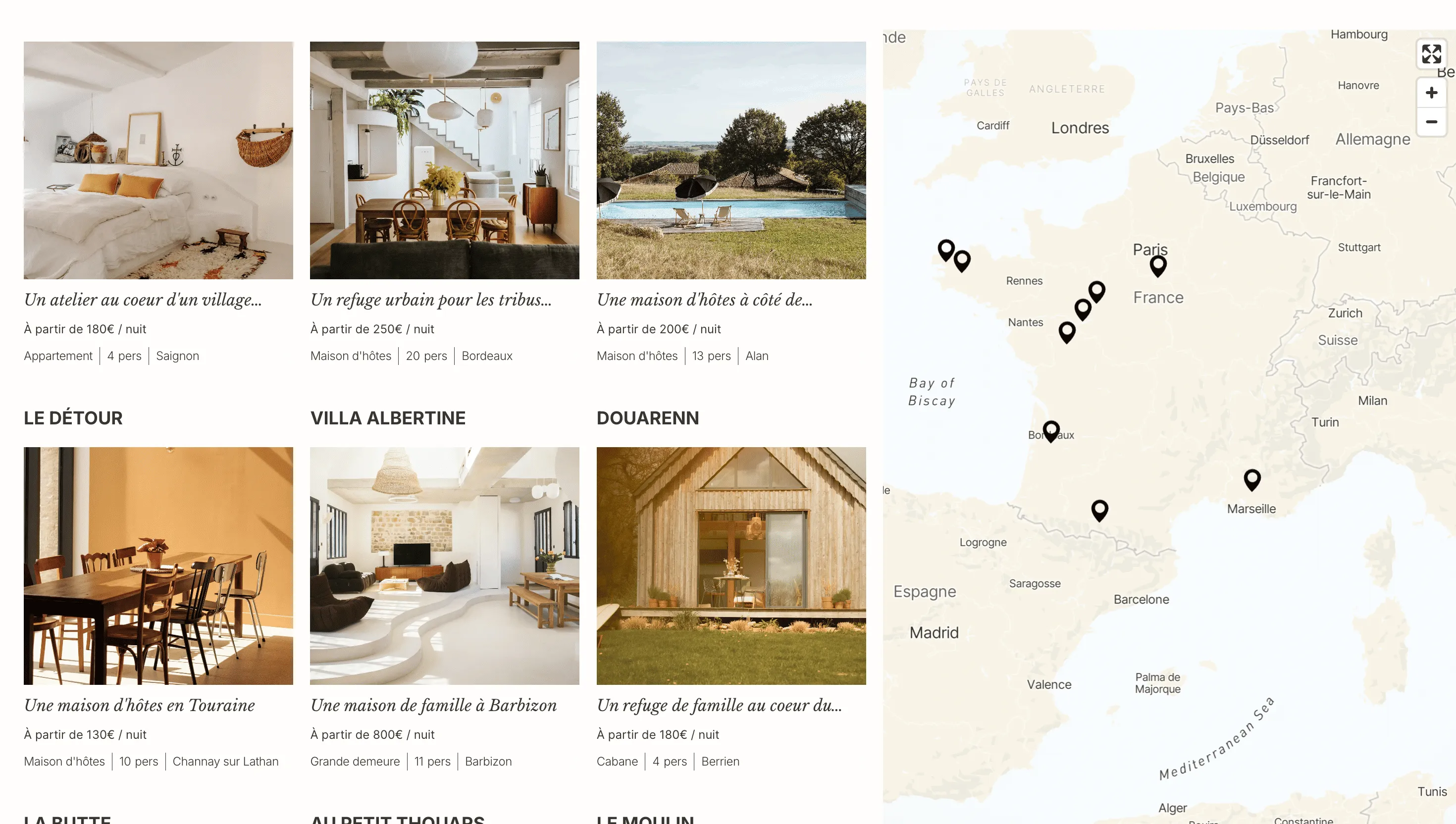L'intégration Mapbox offre une dimension exploratoire unique. Les utilisateurs peuvent naviguer sur une carte stylisée, découvrir des lieux par sérendipité, filtrer par type d'expérience recherchée. Cette approche spatiale renforce le positionnement premium : on ne cherche pas juste un toit, on explore des territoires.